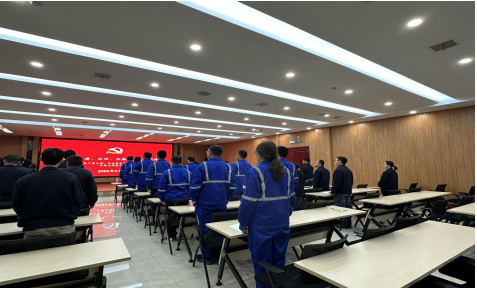 活動開始,全體人員起立奏響國歌 會議上總經(jīng)理助理吳新海傳達(dá)了中材礦山黨委要求,強(qiáng)調(diào)促進(jìn)地域黨支部在“黨建+業(yè)務(wù)”共建中實(shí)現(xiàn)資源共享、業(yè)務(wù)互聯(lián)、優(yōu)勢互補(bǔ)、交流互促、發(fā)展共贏,構(gòu)建“共建、共促、共贏”的區(qū)域化黨建新格局。 要求通過活動,進(jìn)一步達(dá)成區(qū)域協(xié)同,促進(jìn)業(yè)主方和施工方深度融合,通過黨建引領(lǐng),讓我們在安全、管理、形象建設(shè)、專業(yè)技能等各方面得到全面的提升,讓我們在和諧奮進(jìn)的環(huán)境中取得更好的成績。通過持續(xù)性的溝通交流和不斷地完善提升,把我們的礦山建造成“安全的、美麗的、低碳的、智慧的”生態(tài)礦山。